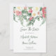 Eucalyptus verde com rosas cor-de-rosa e brancas neste elegante e formal Salve o cartão Date. Personalize com seus nomes, a data do seu casamento e a cidade e o estado.
