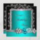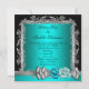 Convites Rosas Florais de Prata Teal Azul Festa de aniversá