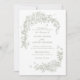 Elegante Floral Leafy Sage Green Wreath Convite De Casamento. Convite De Casamento De Palavras Tradicional. Convite para Caligrafia de Script Elegante. Convite para Paixão de Monograma de Casamento