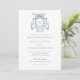 Elegante Rosas Florais Franceses Convocação para Casamento vintage de Crest. Vintage Dusty Blue Crest Convite de Casamento. Convite De Script De Caligrafia Elegante. Convite De Casamento De Rosas Botânicos De eterno Floral Francês. Convite para Paixão de Monograma de Casamento