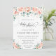Este convite para chás de fraldas de música apresenta um belo rosa de pêssego de cor aquática e um arranjo foliar prateado de eucalipto. Personalize-o com seus detalhes de forma fácil e rápida, basta pressionar o botão personalizar para reorganizar e formatar o estilo e o posicionamento do texto.