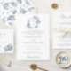 Convites Rosas Franceses Floral Blue Crest Casamento