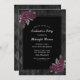 Este belo e sombrio convite para a formatura é perfeito para um formando que ama o estilo gótico ou vintage. Rosas roxos profundos e um padrão de diamante preto, fundo d'água, com uma tipografia angustiada, adiciona apenas o toque certo. Adicione seus detalhes de festa de formatura para um convite especial para mostrar seu estilo pessoal exclusivo. Veja os elementos coordenadores no seu compro, Finch Encantado.