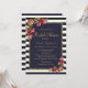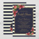 Rosas elegantes, quentes e vermelhas e rosa-do-campo com riscas marinho azul e marfim brancas e dourado imprimido esboçado, Convites de chá de panela. Este design clássico e sofisticado é perfeito para a classe, na moda e a moda. Personalize com sua própria mensagem na frente e um monograma personalizado na parte de trás. Todas as impressão de fotos.