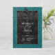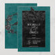 Traga seus convidados para um mundo de elegância escura e encantadora com nosso convite de casamento gótico. O fundo verde verde-preto profundo, envelhecido, define a palco para um contraste impressionante, à medida que o texto branco em negrito emerge de intrincadas caixas de texto em preto. No ápice deste convite, uma fronteira gótica tridimensional adornada com uma raia negra real captura a essência do mistério e do romance. O dorso é enfeitado com duas videiras interligadas de rosas pretas formando sutilmente um coração em torno de dois abraços, o que adiciona um toque de fascínio dramático. Liberte a magia e dê o tom para um dia de casamento inesquecível. Criado pela imprensa simplesmente de farmácia.