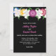 Este elegante convite de casamento floral é perfeito para um casamento floral de verão moderno. A design romântica apresenta rosas azuis, amarelas, roxas e burgundy com tipografia branca elegante sobre fundo negro e ousado.