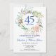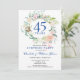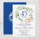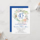 Com um delicado arranjo de folhagens florais em aquarela, este convite de aniversário de casamento de 45 ou 65 anos, com tema botânico elegante, pode ser personalizado com as informações do seu aniversário de casamento de safira. O verso apresenta um arranjo floral correspondente emoldurando as datas de aniversário em texto branco elegante sobre um fundo azul safira. Concebido por Thisisnotme©