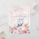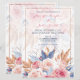 Convites Rosas Pink em Aquarela & Flores Azuis Casamento Ch