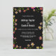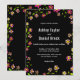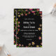 Este elegante convite de casamento botânico é perfeito para um casamento floral moderno. O simples design apresenta um jardim botânico de rosas roxas e magenta e folhas verdes com tipografia branca elegante sobre fundo preto em negrito.