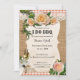 Um convite romântico de festas de noivado com rosas em madeira rústica e burlap com rendas. Bonita para uma celebração de CHURRASCO "Eu faço" e personalizável para outras ocasiões.