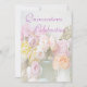 O partido elegante da celebração de Quinceañera convida cartões lisos para celebrações do quinceanera com uma fotografia do pêssego colorido bonito, do rosa, do branco, do amarelo, e de arranjos coloridos lilac dos buquês das flores dos rosas nos frascos de pedreiro de vidro do vintage antiquado elegante. Este chique macio glamoroso, romântico do foco, 15o aniversário projetado elegante, floral/décimos quintos/quinze anos é na moda, à moda e sofisticado e é imprimido/decorado em ambos os lados. Há um texto bonito da celebração do quinceañera na parte dianteira em uma pia batismal cursive extravagante roxa. O verso do cartão tem pérolas bonitas e imagem da esteira do laço. Pérolas e esteira do laço pelo ©Hazel Kinvig-Paul www.design-a-dream.co.uk.