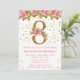 Roses Rosa Floral 8º convite de aniversário para uma menina de 8 anos com escrevendo moderno de escrita e brilho dourado.