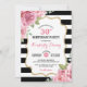 Convite de aniversário inspirado em Paris, com lindas rosas cor-de-água rosa e fundo listrado preto e branco - PARA TODAS AS IDADES!