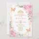 O convite perfeito para a quinceañera da sua filha está finalmente aqui! Este convite cômico e adorável da quinceañera apresenta elegantes flores cor-de-água rosa, uma tiara brilhante dourada e duas borboletas fluentes. Clique no botão "personalizar mais" se quiser reorganizar e formatar o estilo e a posição do texto.