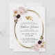 Rosas Rosa Esmagadas Formando o Dourado Convite para Festa de formatura de Quadros Metálicos do Boné... Nosso convite para festas de formatura florais femininas apresenta buquês de lindas rosas cor-de-rosa escamoteadas ao redor de uma estrutura oval de folha metálica de ouro sobre um fundo branco antigo. Dentro, o quadro é um boné de ouro metálico e uma fita, seguida do texto do convite em sans serif e tipografia de script. Todo texto pode ser facilmente revisado no modelo de personalização.
