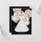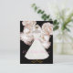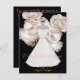 Chá de panela elegante feito em fundo preto com rosas rosa pálidas e gráficos de um vestido de noiva branco e rosa em um suporte de ouro. Personalize todas as áreas de texto na parte traseira e frontal desta placa de excelente para atender às suas necessidades. Altere o estilo, o tamanho e as cores da fonte também, se desejar.