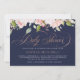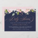 Estes belos convites para vitrines apresentam um roteiro luxuoso de ornamentado de ouro falso, com uma borda de delicada rosa de cor-de-água rosa sobre um fundo azul marinho.