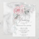Convite de Aniversário | Uma festa de aniversário de jardim de quintal com rosas cor-de-rosa pálidas é o cenário perfeito para o seu conto de fadas, fantasioso aniversário- Rosas de Rosas claro e folhas de Silvery com faíscas numa camada de cor de água de cinza com penas atrás dela. - Uma combinação de caligrafia de script combinada com um texto minimalista e contemporâneo cria um convite a na moda. Esta também é parte de uma coleção de artigos de papelaria de casamento com acessórios de casamento correspondentes criados por © WhimsicalArtwork™ para o justCards™