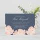 Convites bem impressos com um design floral cor-de-rosa e marinho esbranquiçado que pode ser personalizado para seu dia especial.