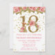 Roses Rosa Floral 18º convite de aniversário para uma menina de 18 anos com escrevendo moderno de escrita e brilho dourado.