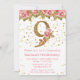 Roses Rosa Floral 9º convite de aniversário para uma menina de 9 anos com escrevendo moderno de escrita e brilho dourado.