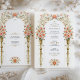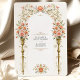 Este sofisticado convite de casamento inspirado na Vitoriana apresenta um arranjo espantoso de rosas cor-de-rosa, delicadas vinhas florais e elegantes urnas de ouro. O intricado design, enfeitado com sotaques sutis de borboletas e filigrana ouro, cria uma estética refinada e romântica. O fundo do creme melhora o charme do eterno, fazer este convite perfeito para casais que buscam artigos clássicos e luxuosos com tema floral.