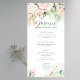 Rosas cor-de-rosa claras e folhas verdes moldura para o menu de casamento.