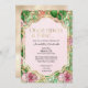 Este elegante convite de festas personalizado apresenta um tema de conto de fadas da Bela Dormindo. A borda é um padrão de vidro manchado com rosas cor-de-rosa. A parte de texto apresenta um design de pergaminho cor-de-rosa suave, com um quadro de estilo dourado e vintage. A frase clássica do conto de fadas, "Uma vez por vez" é impressa em uma fonte dourada correspondente acima das informações do evento.