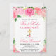 Este convite elegante para a Primeira Comunhão apresenta rosas cor-de-rosa suaves, folhagens delicadas e acentos dourados espalhados emoldurando um layout luminoso e atemporal. Uma cruz dourada com um pequeno detalhe floral adiciona um toque significativo e reverente, enquanto a borda listrada de rosa e branco traz um toque doce e moderno. A combinação de letra cursiva graciosa e tipografia serifada clássica cria uma apresentação polida e feminina perfeita para celebrar este sacramento especial. Totalmente personalizável com os detalhes do seu evento, este design combina-se lindamente com papelaria floral correspondente para um conjunto de Comunhão coeso.
