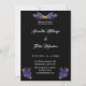 Rosas roxas com Convite para Casamento Gótico de Moth Dourada com mapa de instruções e informações de registro no verso. ©Tabz Jones todos os direitos reservados.