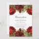 Vintage Chic Burgundy rosa vermelha quinceanera convite com sotaques de ouro. Celebre seu dia especial com este luxuoso convite da Quinceañera, com rosas vermelhas vintagantes e sotaques de ouro intrincados em um fundo negro dramático. A elegante design e a tipografia clássica tornam este convite perfeito para uma sofisticada celebração da Quinceañera. Totalmente personalizável com todos os detalhes do evento para criar uma impressão memorável.