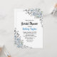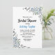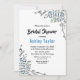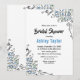 Este elegante chá de panela floral é perfeito para um moderno chá de panela floral de verão. A design romântica apresenta uma ilustração simples de flores azuis com uma elegante tipografia preta sobre fundo branco.