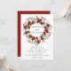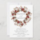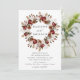 Convites de casamento florais elegantes com seus nomes circundados por uma grinalda de rosas em aquarela, folhagens e vegetação em tons de borgonha, marfim, verde, marrom e dourado com os detalhes do seu casamento exibidos abaixo. O verso do convite de casamento com grinalda floral de outono é de um fundo vermelho ferrugem escuro/borgonha.