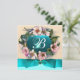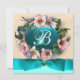 Elegante, sofisticado, clássico design floral. Belas rosas cor-de-rosa caninas com uma pedra preciosa brilhante aquamarina. Gráficos 3D e elaboração digital em estilo vintage por Bulgan Lumini (c) Fácil de personalizar com suas iniciais e texto próprio como um anúncio de cerimônia de casamento, cartões de lugar, save-the-date, lembrancinhas, cartões de agradecimento, chá de noiva, chá de bebê, aniversário de 16 anos, Bat Mitzvah, formaturas, chá de lingerie, aniversários, celebrações ou qualquer outro evento que você desejar!