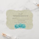 Um RSVP de casamento com 3 rosas teal pintadas com aquarelas. O fundo é um padrão de damasco bege.