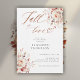 Um chá de panela romântico, elegante, clássico e moderno para os meses de outono - setembro, outubro, novembro. Apresenta caligrafia moderna e elegante e o título "apaixonar-se" e um arranjo floral rústico de folhas de outono e rosas com uma matiz laranja queimada, terracota. Luxuoso, mas simples, clássico, mas chique, moderno, mas eterno. Uma escolha encantadora para uma festa de noivado de outono com cobre, laranja queimada, terracota, bege, vermelho, laranja e outras matizes de queda.