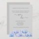 Um design elegante com um buquê de rosas azuis em pó e o texto "Fazemos". O RSVP correspondente está disponível em: https://www.zazzle.com/dusty_blue_roses_gray_elegant_floral_wedding_rsvp_invitation-256803175437493548