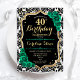 Convite de festas aniversário de 40 anos. Elegante design verde-esmeralda floral com ouro e rosas brilhantes falsos. Apresenta cor damasco preta e branca e fonte de script. Perfeito para uma comemoração de dia das mulheres na moda. Pode ser personalizado para qualquer idade! Impressos convites Zazzle ou modelo de impressão digital instantânea para download.