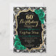 60º Convite de aniversário. Elegante design verde-esmeralda floral com ouro e rosas brilhantes falsos. Apresenta cor damasco preta e branca e fonte de script. Perfeito para uma comemoração de dia das mulheres na moda. Pode ser personalizado para qualquer idade! Impressos convites Zazzle ou modelo de impressão digital instantânea para download.