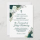 Este belo convite para o casamento é perfeito para uma cerimônia católica moderna. Ele apresenta um design de música 'bico' rústico com letras de guião elegantes e rosas de aquarelas pintadas manualmente em tons de esmeralda e verde-sábio. Inclui uma cruz ou crucifixo, e uma formulação convidando seus convidados a assistir a uma massa nupcial unindo o casal no sacramento do matrimônio sagrado. Este convite é a combinação perfeita de tradição formal e estilo moderno, fazer uma maneira maravilhosa de convidar seus amigos e família a compartilhar sua alegria no seu dia especial.