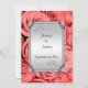 Convites bonitos, à moda e românticos do casamento para seu dia especial. A parte dianteira destes convites de casamento florais bonitos para casais tem uma imagem impressa de um par de alianças de casamento de prata bonitas do diamante com um coração dos diamantes sparkly unidos, em um fundo de prata bonito do inclinação. Na prata o inclinação é um quadro preto e de prata elegante, impresso toda em um fundo romântico impressionante de rosas coloridos vermelho. O reverso deste convite de casamento elegante tem o mesmo design com bastante espaço para que você personalize com o fraseio de sua escolha. Todo o texto é inteiramente customizável cumprir suas exigências. NOTE POR FAVOR: Todos os produtos em Zazzle têm imagens impressas do plano.