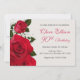 Convite de aniversário elegante com rosas vermelhas e pequenas flores brancas.