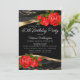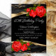 Faça da sua celebração de aniversário algo verdadeiramente memorável com nosso deslumbrante convite de aniversário de qualquer número! Com elegantes rosas vermelhas contra um lindo fundo preto e dourado, este convite prepara o cenário para um evento sofisticado e inesquecível. Personalize com sua idade e detalhes do evento para criar um convite personalizado que reflete seu estilo e define o tom para uma celebração fabulosa.