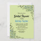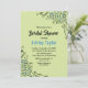 Este elegante chá de panela floral é perfeito para um moderno chá de panela floral de verão. A design romântica apresenta uma ilustração simples de flores azuis com uma elegante tipografia preta num fundo verde sábio.
