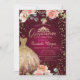 Dourada tiara, vestidos, rosas e diamantes em fundo burgundy.