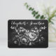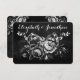 Belo e sofisticado aviso de casamento com lindas rosas da era vitoriana e fitas em um fundo de quadro-negro encantador. Personalize-o com o seu próprio texto.