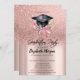 Convites Rose Gold Glitter Floral Grad Cap Bow Graduation