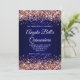 Convites Rose Gold Glitter Navy Blue Ombre Quinceanera
