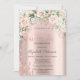 Um convite moderno, chique e glamoroso com rosas, gotas de glitter em um fundo rosa dourado.