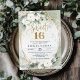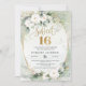 Convites ovais de rosa branca com folhagem em dourado para festa de 15 anos,